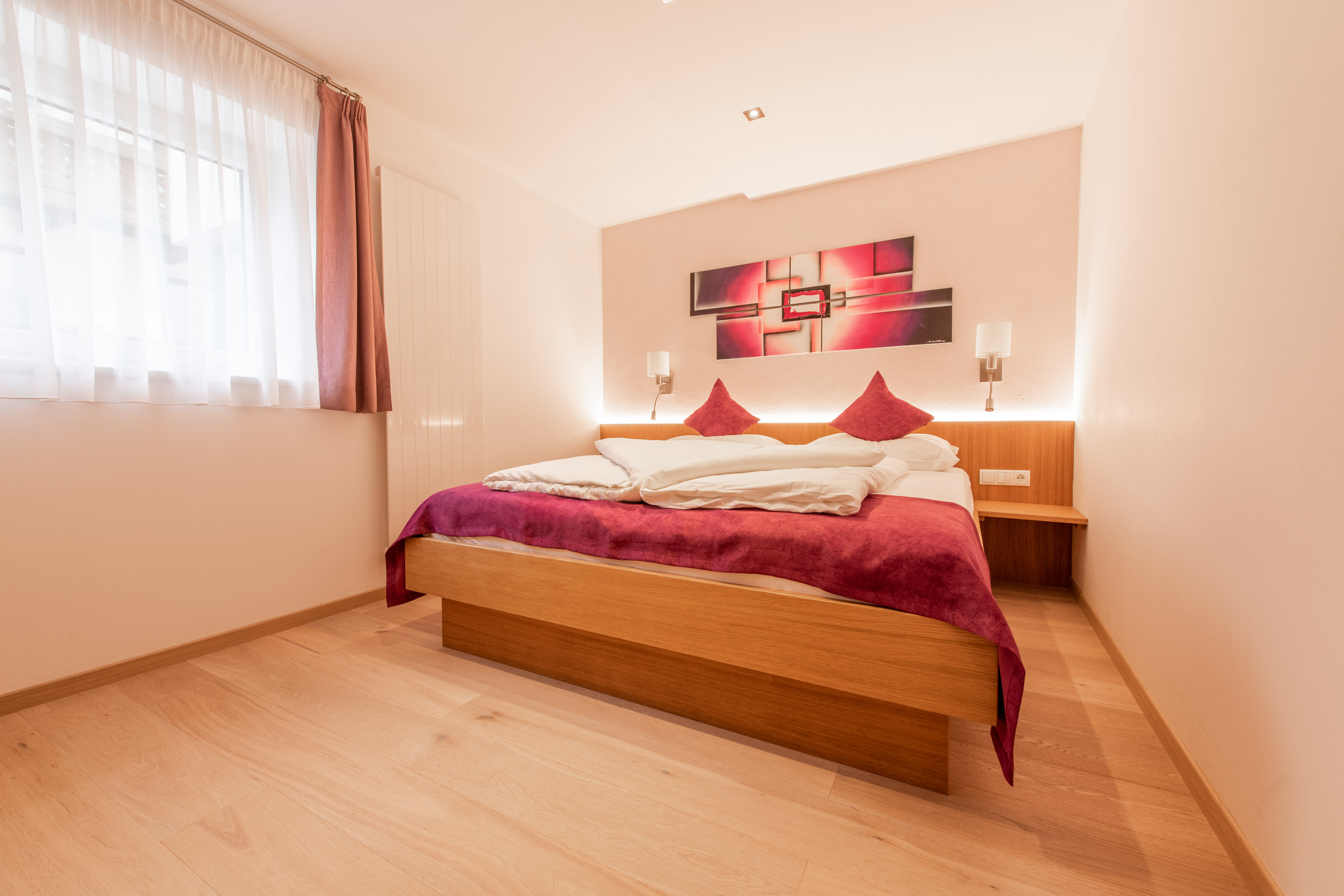 2 getrennte Schlafräume mit Doppelbett, Eichenholz-Böden, 2 Westbalkone (Bachseite), 2 Badezimmer mit Dusche /WC, Fön, Kosmetikspiegel, Wohnraum mit Sitzecke, Doppelschlafcouch, digitaler Flachbild-SAT-TV, Internet& DAB+Bluetooth-Radio, komplett ausgestattete Küchenzeile mit Kühlschrank, Spülmaschine, Mikrowelle, Kaffeemaschine Americano, Pad-Kaffeemaschine, Espressokocher, Wasserkocher, Bettwäsche und Handtuchservice. Nichtraucher